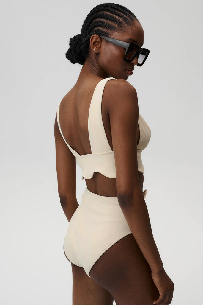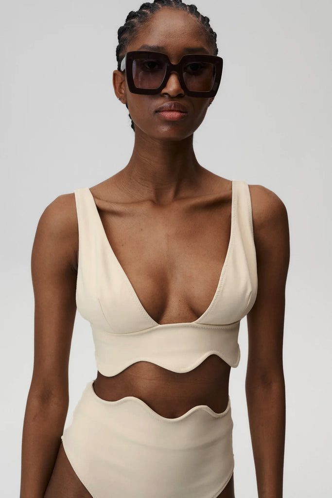 Bardot Bikini Top to połączenie ponadczasowego stylu i subtelnej zabawy formą. Falujący brzeg nadaje sylwetce wyjątkowego charakteru, a szerokie ramiączka zapewniają komfort i solidne wsparcie. Idealny wybór zarówno na leniwe dni przy basenie, jak i długie spacery brzegiem morza – w Bardot Bikini Top poczujesz się pewnie i wyjątkowo.