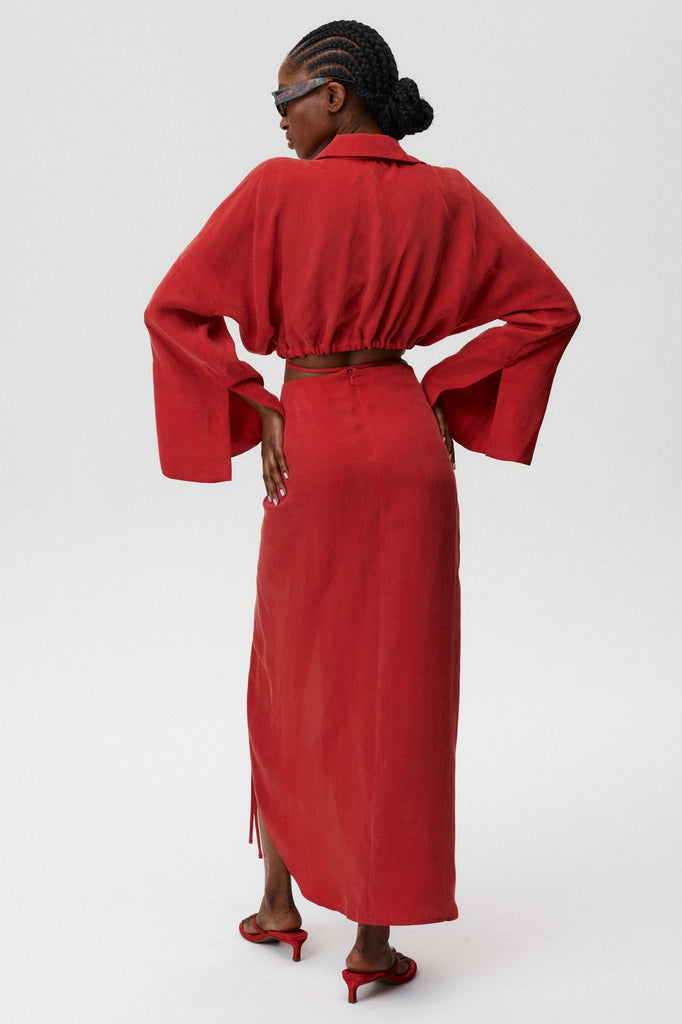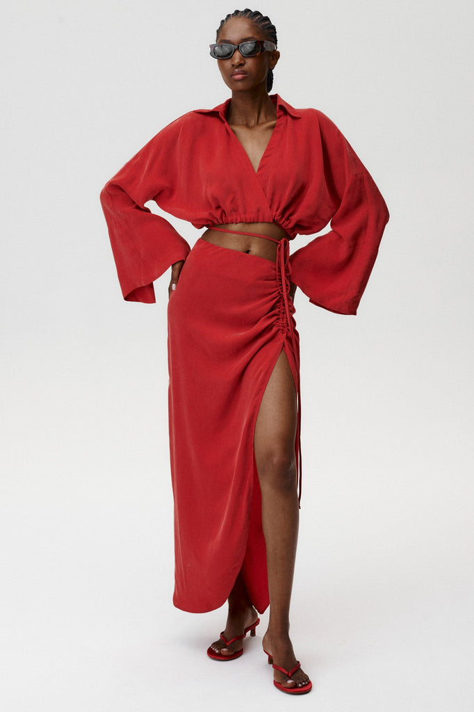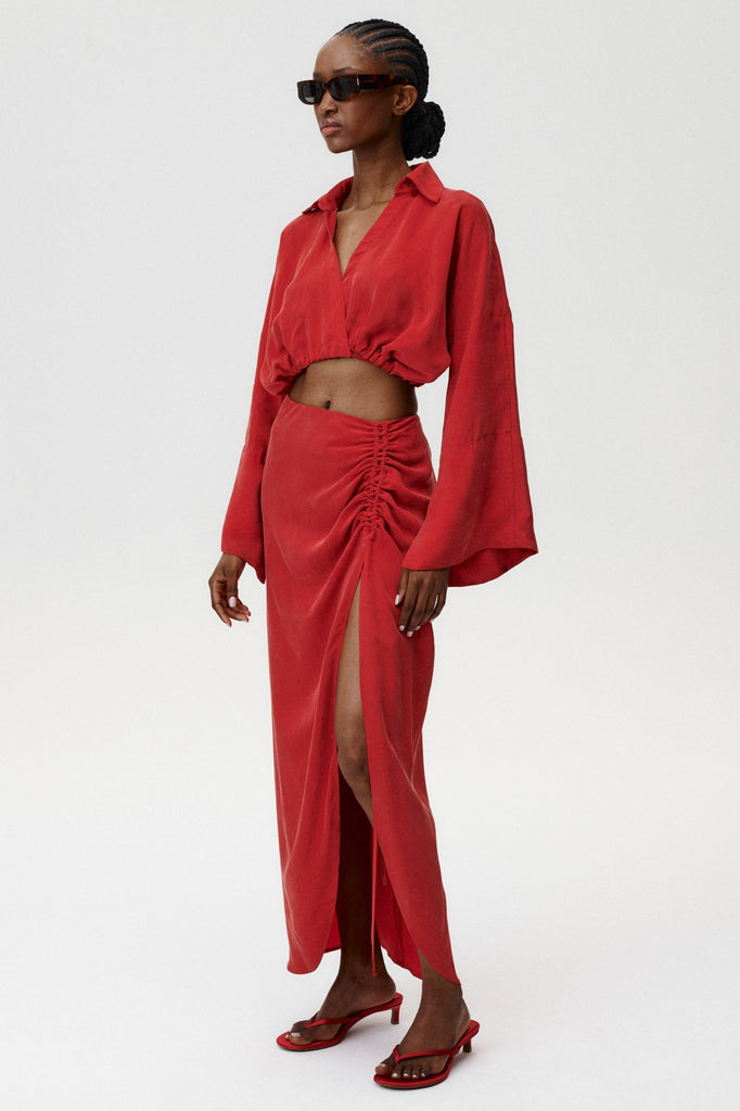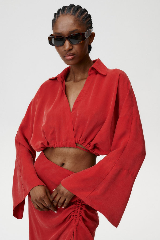 Mamma Mia, jak tu się jej oprzeć? Pełna wdzięku, cudownie zwiewna, letnia koszula o krótszym kroju, która pięknie podkreśli każdą sylwetkę i będzie wyglądać obłędnie zarówno do spodni, jak i spódnicy Rhea.
