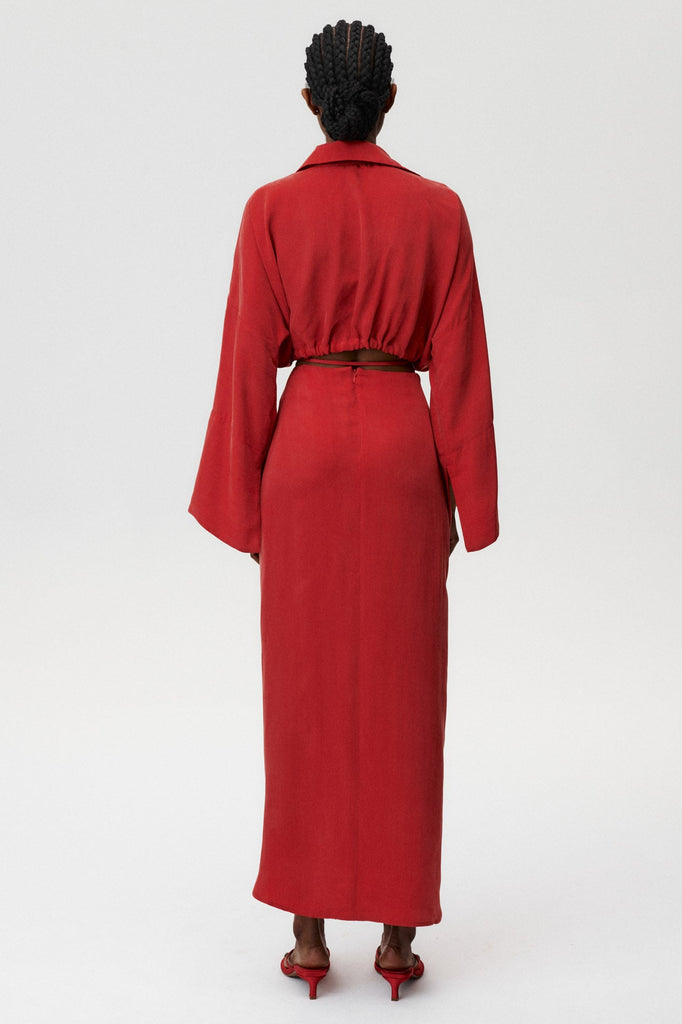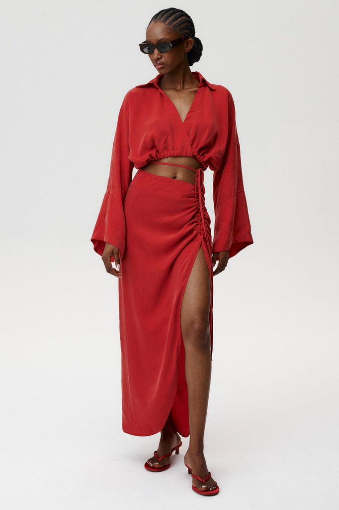 Klasyczna, pięknie układająca się na biodrach spódnica Rhea, z głębokim wycięciem na udzie, które w razie potrzeby możesz wyregulować. Wyjmij ją z szafy, dobierz basicową górę lub naszą koszulę Mamma Mia i wyglądaj po prostu, nonszalancko, fantastycznie.