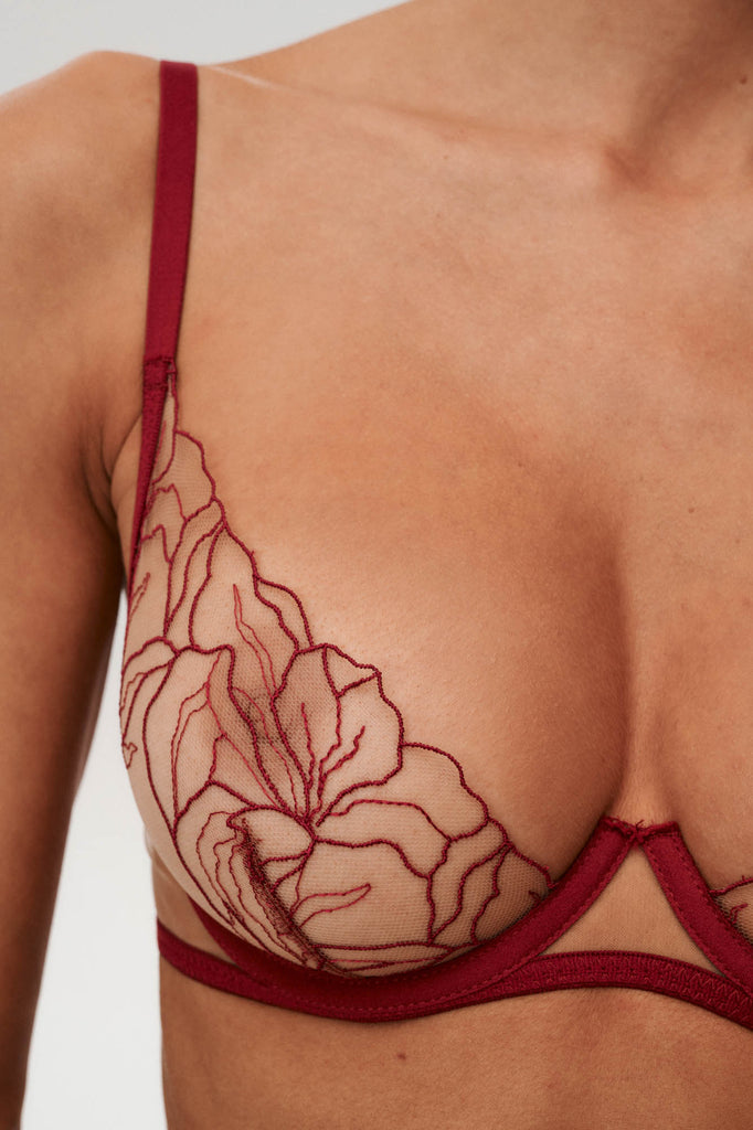 Subtelne połączenie kobiecości i zmysłowości, biustonosz Adore wyróżnia się misternym haftem i eleganckim designem. Ten biustonosz na fiszbinach zapewnia idealne połączenie wsparcia i wdzięku, niezależnie od tego, czy nosisz go pod białą koszulą, czy stylizujesz solo, aby dodać sobie pewności siebie. Burgund to nasz kolor sezonu - zmysłowy, kobiecy i niezwykle elegancki.