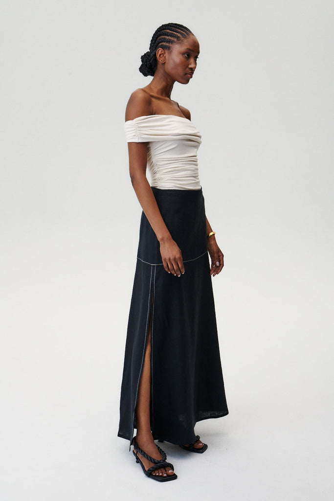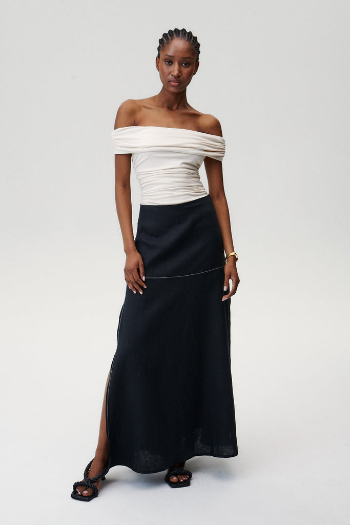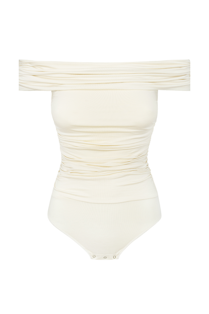 - Body z opuszczonymi ramionami w kremowym odcieniu.