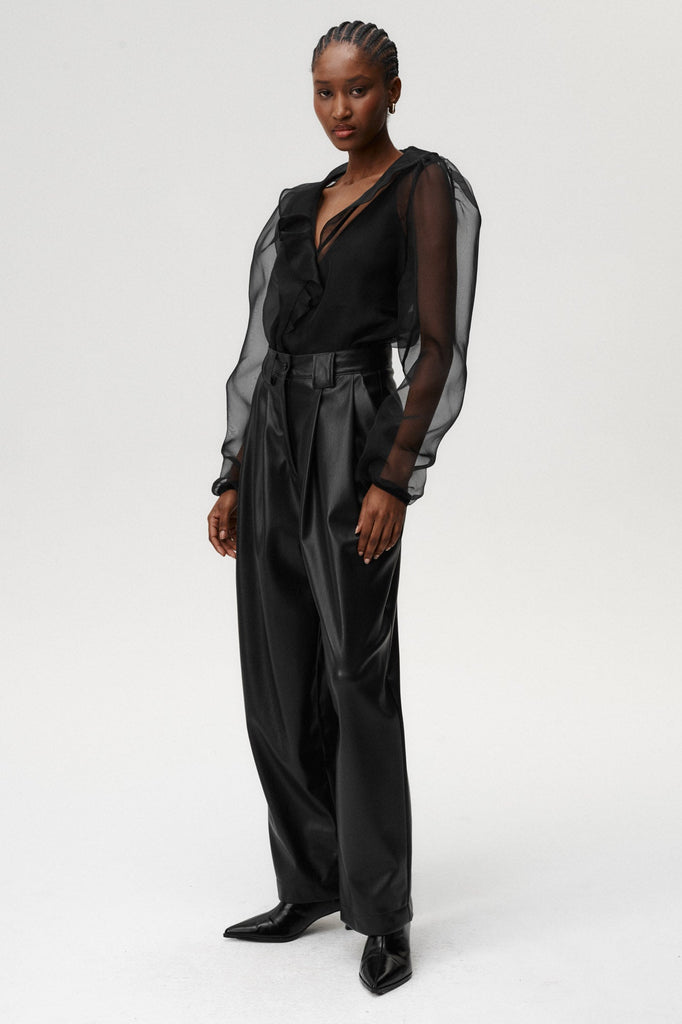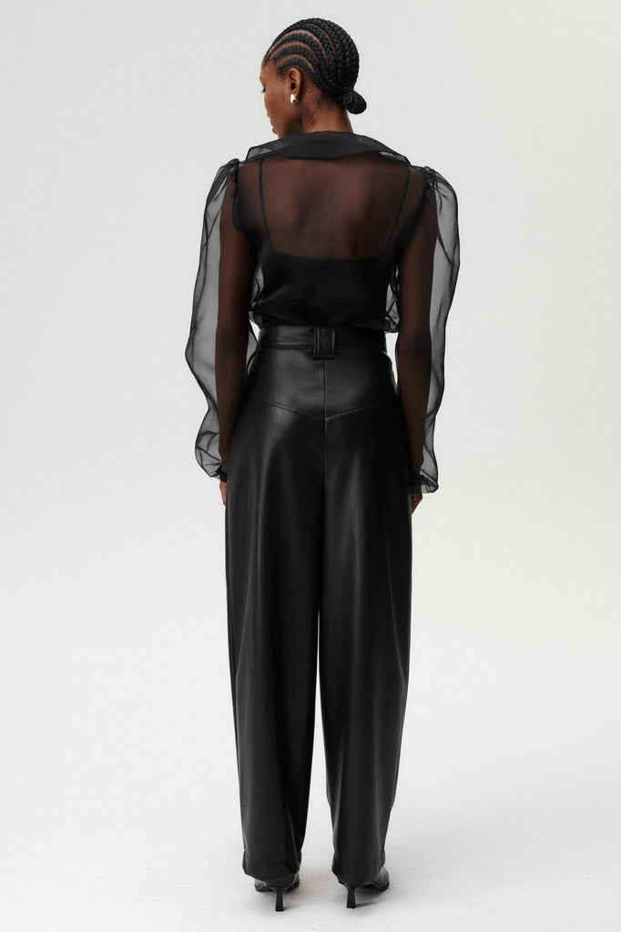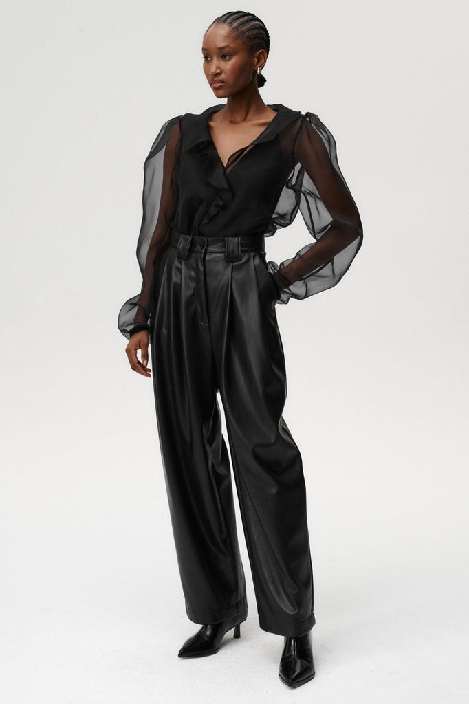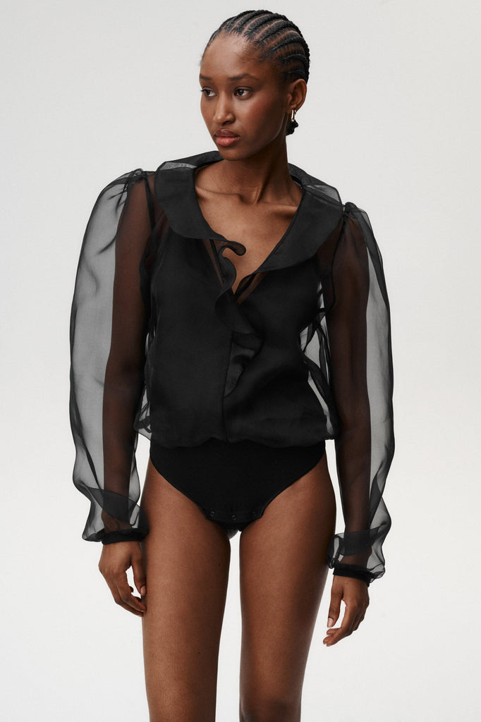 Camille to nowa definicja codziennej elegancji z nutą wyrafinowania. Przezroczysta jedwabna organza tworzy lekką, warstwową strukturę. Podszewka z tencelu zapewnia pełne krycie, podczas gdy organza pozostaje subtelnie transparentna i zwiewna. Dekolt w kształcie litery V z delikatnym wykończeniem podkreśla linię obojczyków, a bufiaste rękawy zakończone elastycznymi mankietami dodają lekkości i ruchu. Camille bez trudu przechodzi z biura na elegancką kolację, to model, który udowadnia, że wyrafinowanie nie zna okazji.