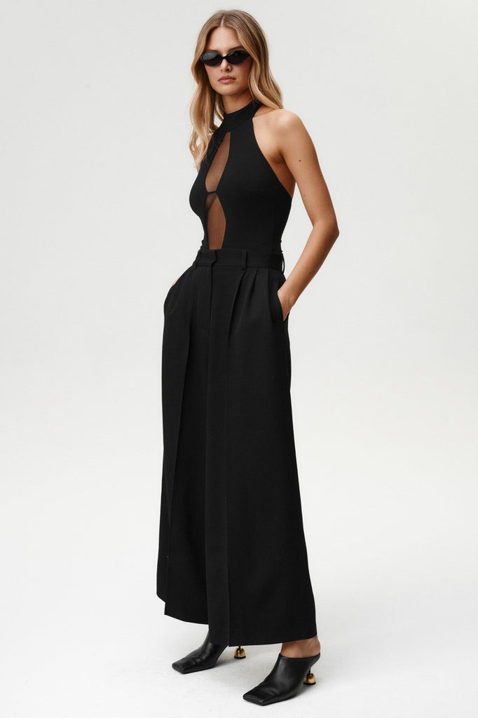 Ponadczasowa klasyka z nowoczesnym akcentem — body Jolie zachwyca eleganckim krojem typu halter i migdałowym wycięciem z transparentnej siateczki na przodzie. Wykonane z miękkiej, elastycznej tkaniny, która otula sylwetkę niczym druga skóra, idealnie sprawdzi się na romantyczne wieczory i eleganckie wyjścia pod marynarkę. Zestaw je z dopasowanymi spodniami, by stworzyć stylizację na kolację lub noś solo pod marynarką, by dodać lookowi nowoczesnego szyku.