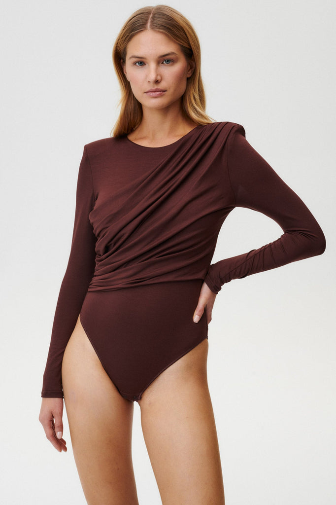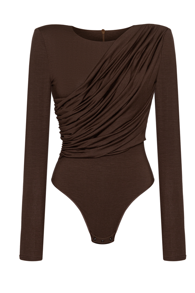 Idealna propozycja na chłodniejsze dni. Subtelne, klasyczne body z ozdobnym drapowaniem podkreślające każdą sylwetkę. Wystylizuj je z czarnymi spodniami czy jeansami na co dzień lub mini spódnicą i wysokimi butami na wieczór.