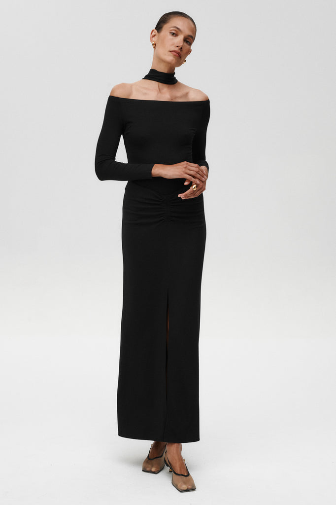 Niezwykła, wyrafinowana elegancja z subtelnie zaokrąglonym dekoltem, który pięknie eksponuje ramię i golfem w stylu glamour z lat 90. Po prostu je załóż, a nagle znajdziesz się na randce w teatrze czy na drinku o północy.