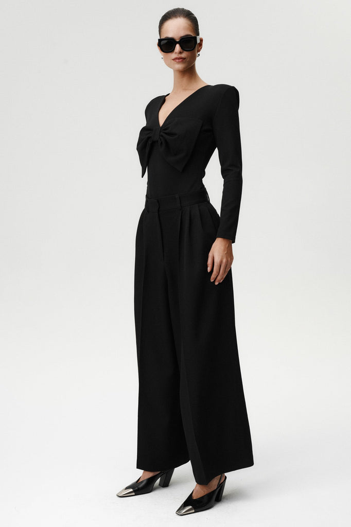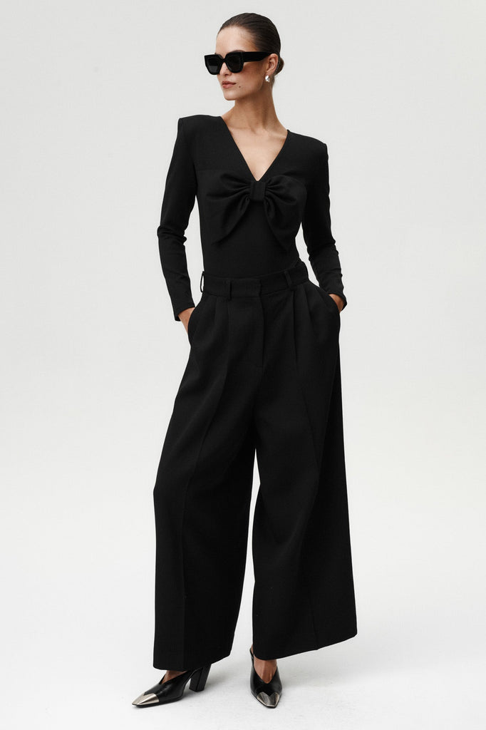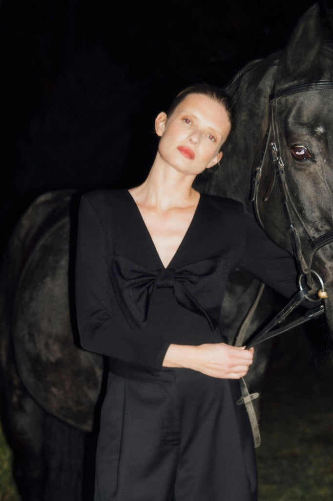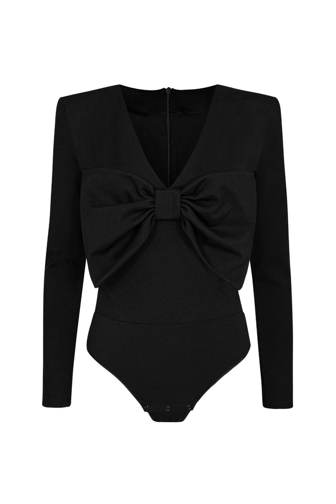 Nie jest to zwykłe body. Holly zostało stworzone, by przyciągać spojrzenia - bez względu na okazję. Połącz je z szerokimi spodniami na elegancką kolację lub z mini spódnicą i szpilkami, gdy nadchodzi czas na taniec. Głęboki dekolt i strukturalna kokarda nadają mu wyjątkowego charakteru, a usztywnione ramiona podkreślają sylwetkę i dodają pewności siebie. Uszyte z gładkiej dzianiny punto, idealnie dopasowuje się do ciała i zachowuje kształt przez cały wieczór. To model, który odmieni Twoją garderobę.