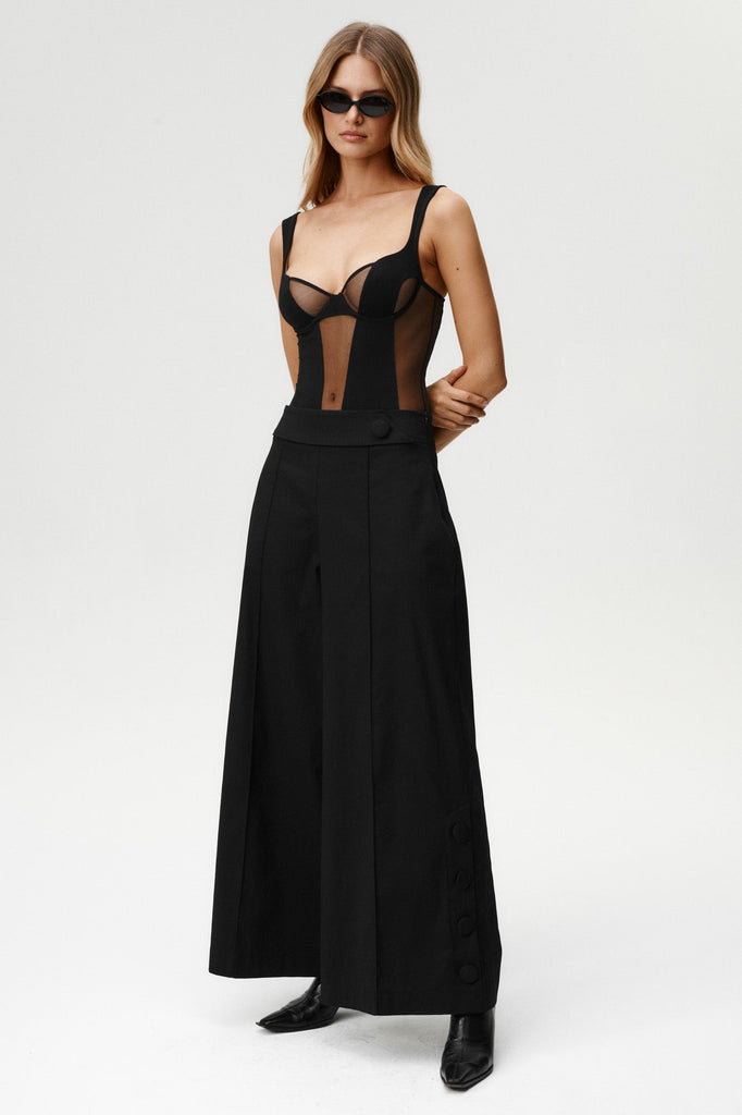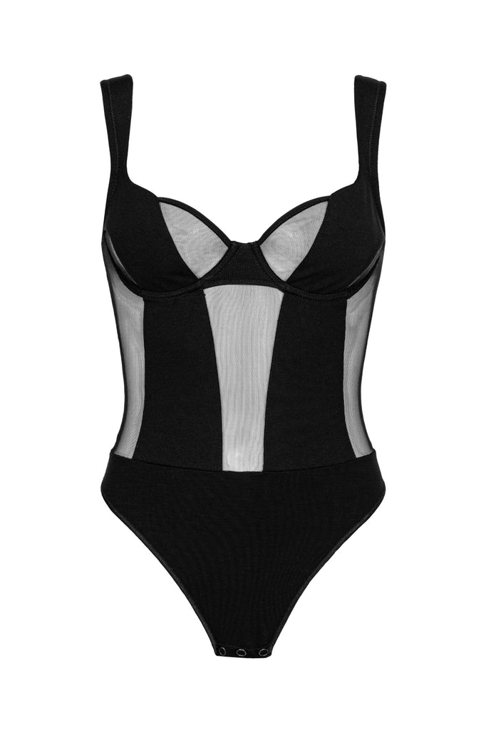 Dla tych, którzy cenią sobie pierwsze wrażenie — body Missy to czysta energia i pewność siebie. Zmysłowy krój i odrobina pazura tworzą idealne połączenie seksapilu i elegancji. Wbudowany biustonosz z fiszbinami zapewnia wsparcie, a cienkie ramiączka i połączenie miękkiej wiskozy z transparentną siateczką dodają lekkości i wyrafinowania. Idealne na kolację, taneczną noc lub jako modowy akcent pod marynarkę. Missy z łatwością przenosi się z randki na ulice w stylu high fashion.