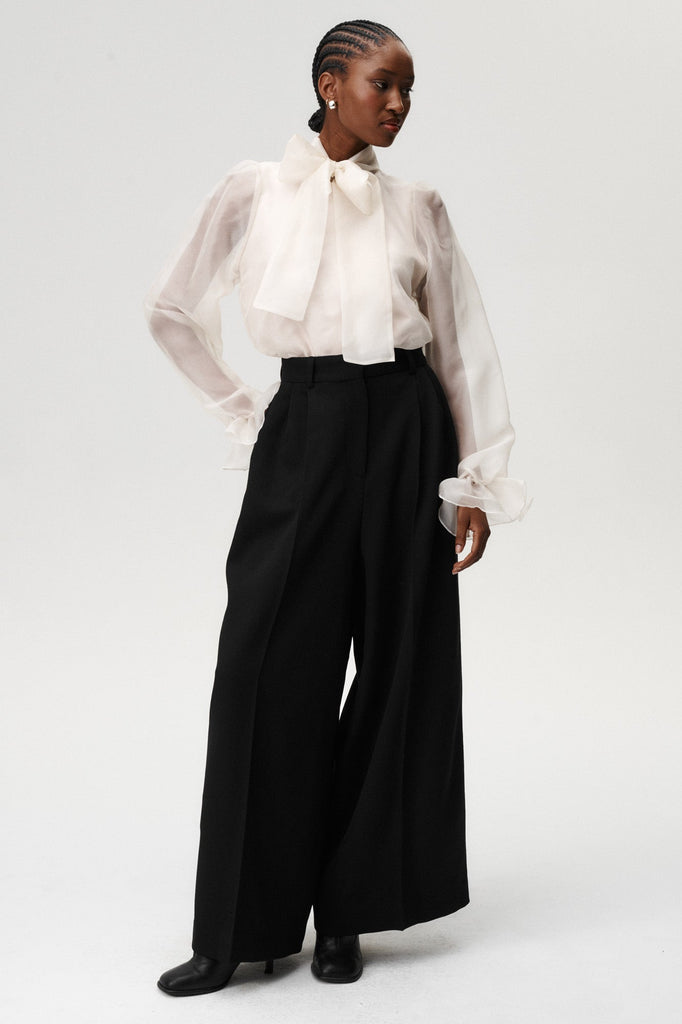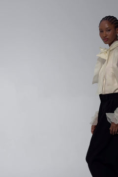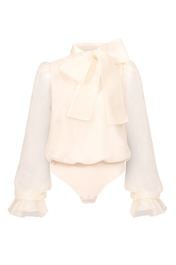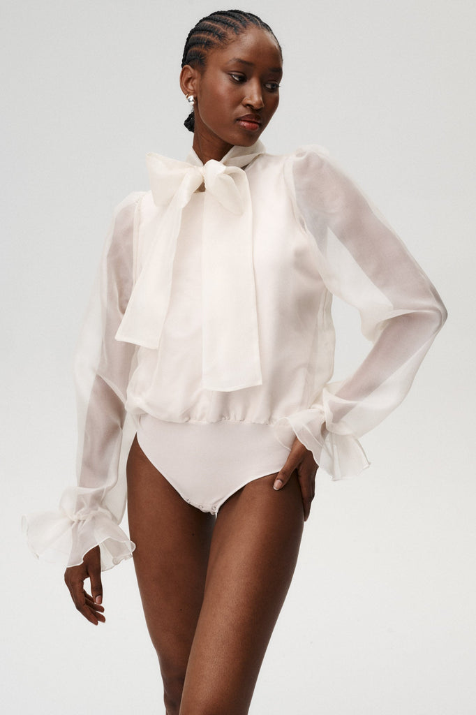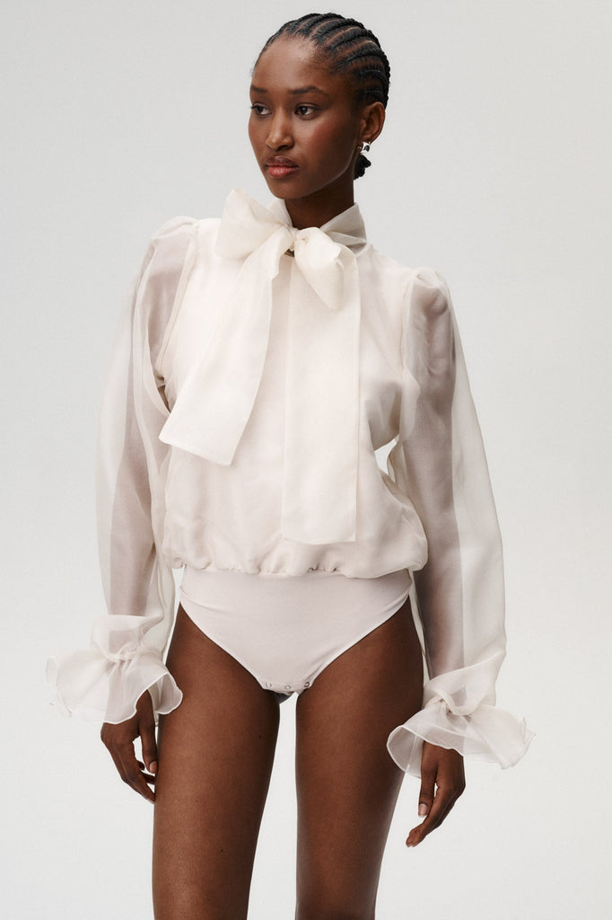 Dla tych, którzy dostrzegają elegancję w detalach. Pure Elegance to nowoczesna klasyka w odświeżonym wydaniu, teraz dostępna w kolorze kremowym. To model, który łączy wyrafinowanie z delikatną nutą zmysłowości. Przezroczyste, lekkie rękawy kontrastują z w pełni podszytym tułowiem, zapewniając idealne krycie. Zwiewna kokarda przy dekolcie działa jak biżuteria, subtelna, ale przyciągająca uwagę. Uszyty z delikatnej jedwabnej organzy i podszyty miękkim tencelem, dopracowany w każdym szczególe. Niezależnie od tego, czy zestawisz go z eleganckimi spodniami, czy spódnicą na wieczorne wyjście, Pure Elegance udowadnia, że mniej znaczy więcej.