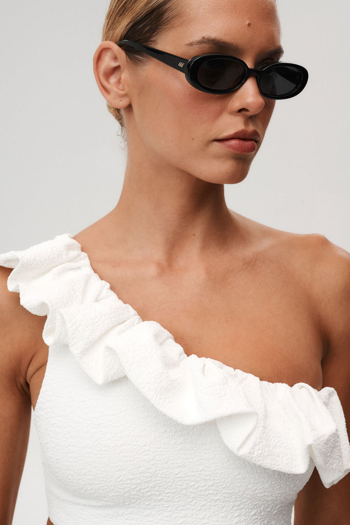 W tym stroju poczujesz się jak muza Botticellego. Piękna, asymetryczna góra od bikini z ozdobną falbaną na linii dekoltu sprawdzi się zarówno na plażę, jak i do letniej stylizacji z białymi spodniami z wysokim stanem lub jeansami. Nazwa tego topu nie jest przypadkowa - wynurz się z wody mając go na sobie i rozejrzyj dookoła - wszystkie spojrzenia będą skierowane na Ciebie, Venus!