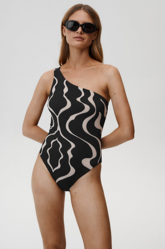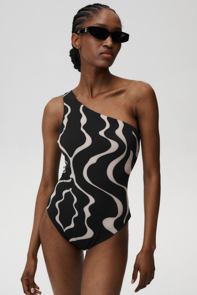 Asymetryczny krój w połączeniu z unikatowym printem to idealna propozycja dla UC dziewczyn wybierających na plażę nieklasyczne i bardziej fashion rozwiązania. Strój ten idealnie sprawdzi się też jako body.