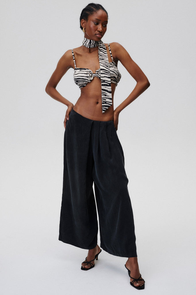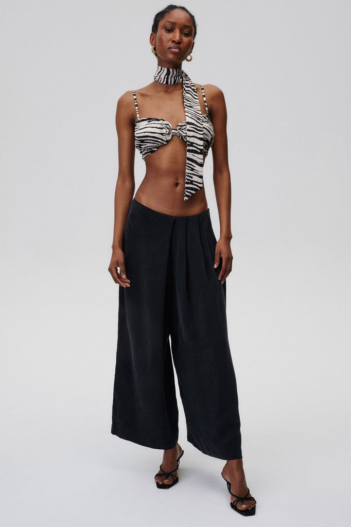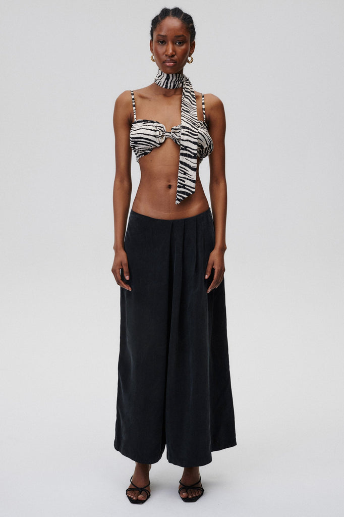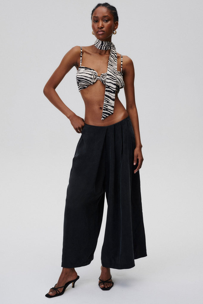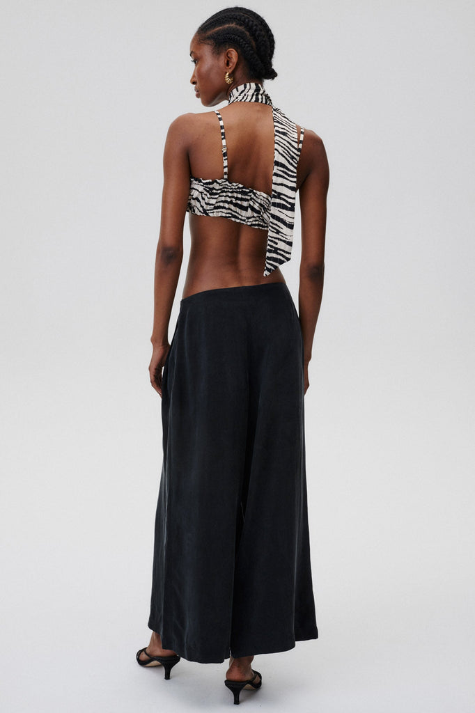 - Stworzony z oddychającej i wygodnej wiskozy w zebrowy print.