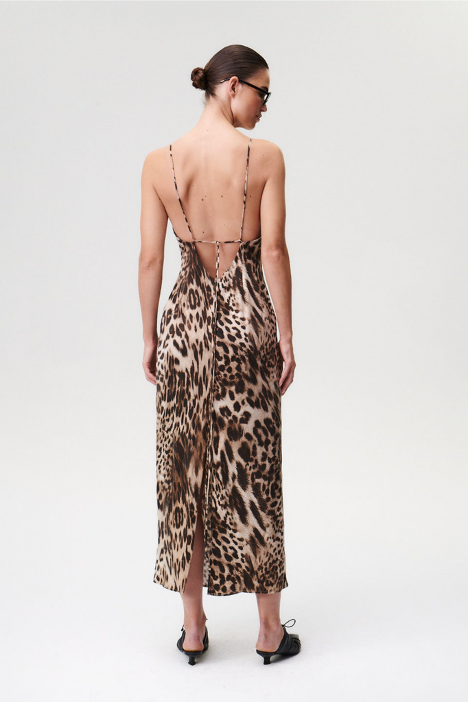 Sukienka Havana łączy w sobie drapieżny charakter z ponadczasową kobiecością, podkreślając sylwetkę dzięki smukłemu, dopasowanemu krojowi. Cienkie ramiączka dodają subtelności, a zwiewna tkanina sprawia, że sukienka pięknie układa się na ciele i porusza się z każdym krokiem. Lekka i przewiewna, doskonale sprawdzi się zarówno na co dzień w eleganckim wydaniu, jak i na wyjątkowe okazje.
