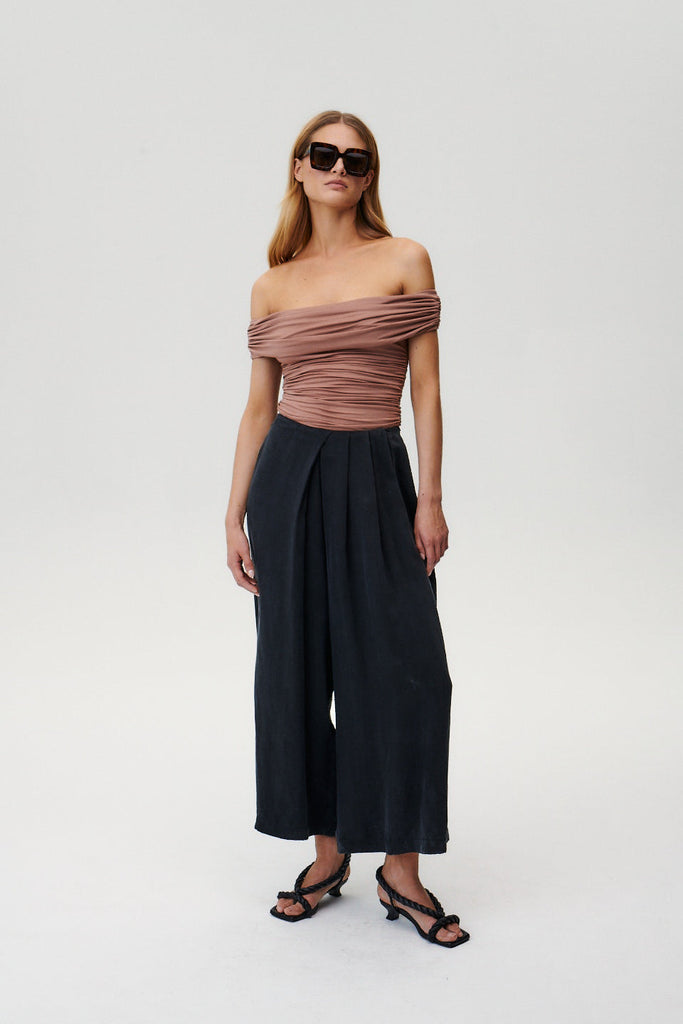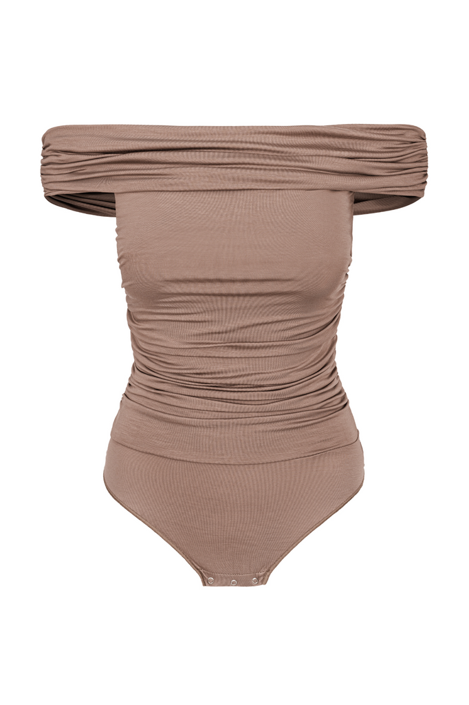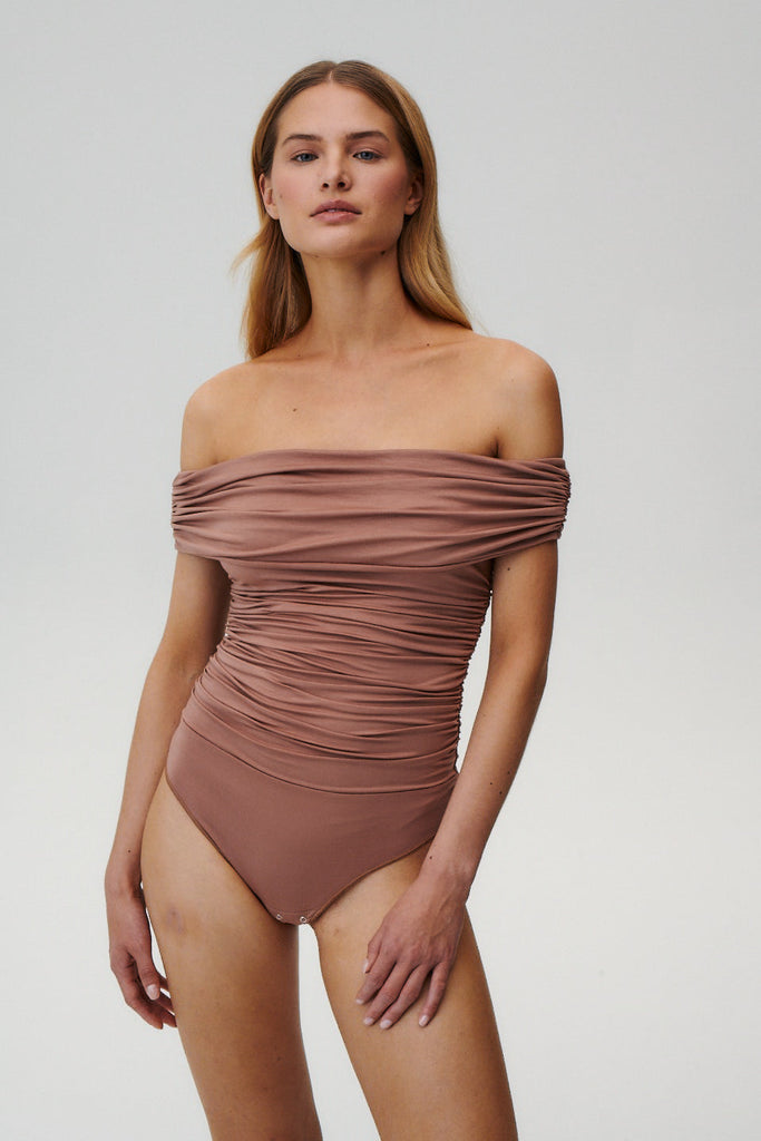 - Body z opuszczonymi ramionami w orzechowym odcieniu.