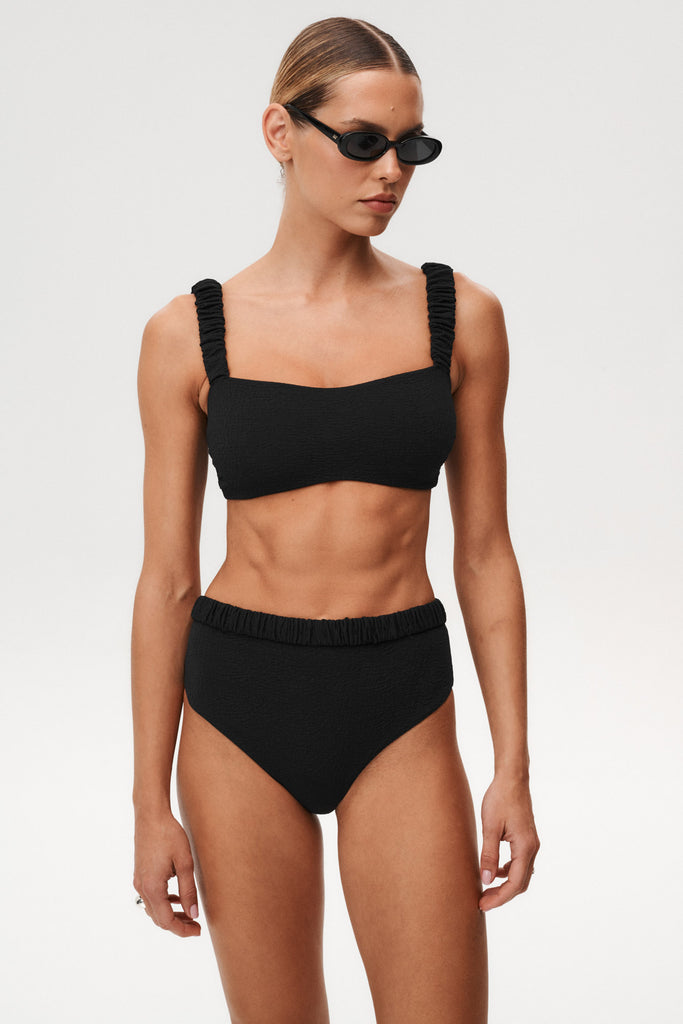 Widząc ten kostium, od razu przychodzi nam na myśl opalona skóra i włosy jeszcze wilgotne po kąpieli w morzu. Dodaj tylko ulubione jeansy, rozpiętą białą koszulę i wiklinowy koszyk, aby stworzyć casualowy wakacyjny look w stylu Jane Birkin na francuskiej prowincji.