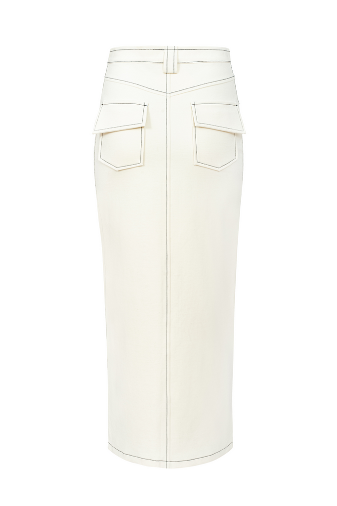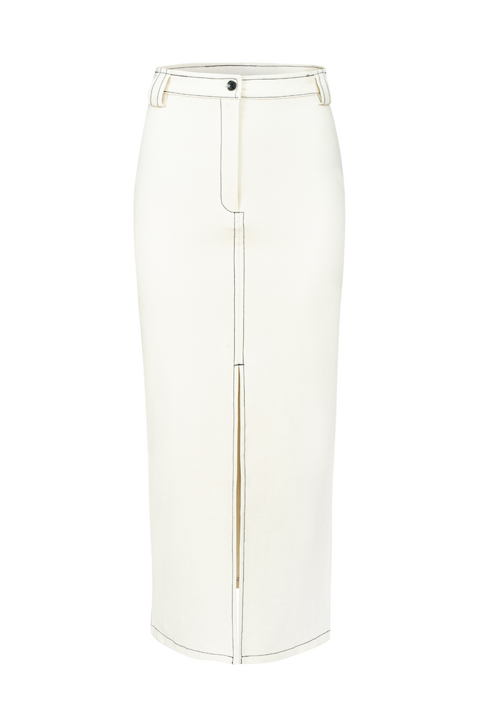 Spódnica maxi z wysokim stanem w odcieniu kremowym.