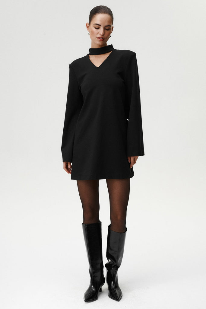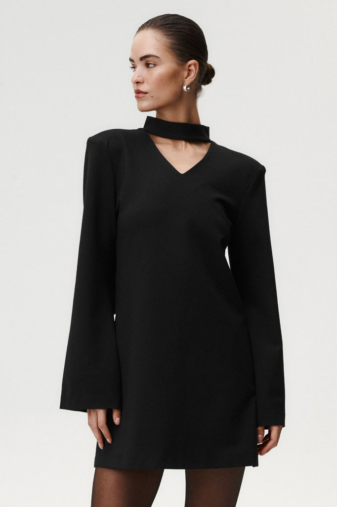Studium kobiecej siły i nowoczesnej formy. Noel to sukienka mini, która zachwyca kokardą z tyłu i precyzyjnym kołnierzem typu stójka, zapinanym na dyskretny zatrzask. Poduszki na ramionach nadają sylwetce wyrazistości i pewności, możesz je odpiąć, jeśli wolisz delikatniejszy efekt. Z tyłu uwagę przyciąga trójkątne wycięcie i szerokie mankiety, które dodają całości lekkości i elegancji. Sukienka została uszyta z grubszego, strukturalnego materiału, dzięki czemu idealnie trzyma formę. To model, który łączy siłę z wyrafinowaniem.