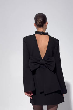 - Duża kokarda z tyłu i trójkątne wycięcie na plecach.