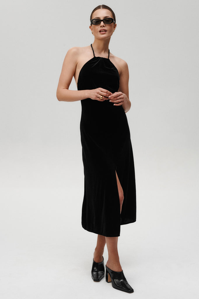 Francuska elegancja oraz najseksowniejsza propozycja w naszej kolekcji. Odkryte plecy, rozcięcie po boku, halter dekolt, a to wszystko pięknie połączone z naszym szlachetnym aksamitem. The French Way Dress zabierze Paryż wszędzie tam, gdzie jesteś.