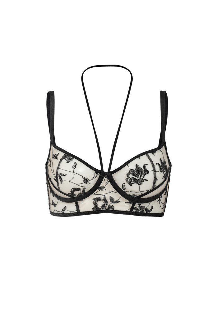 Urzekający design, który łączy elegancję i zmysłowość – biustonosz Eden wyróżnia się misternym czarnym haftem kwiatowym na przezroczystej włoskiej siateczce. Wbudowany detal w formie uprzęży pięknie podkreśla dekolt, dodając odważnego i unikalnego charakteru.