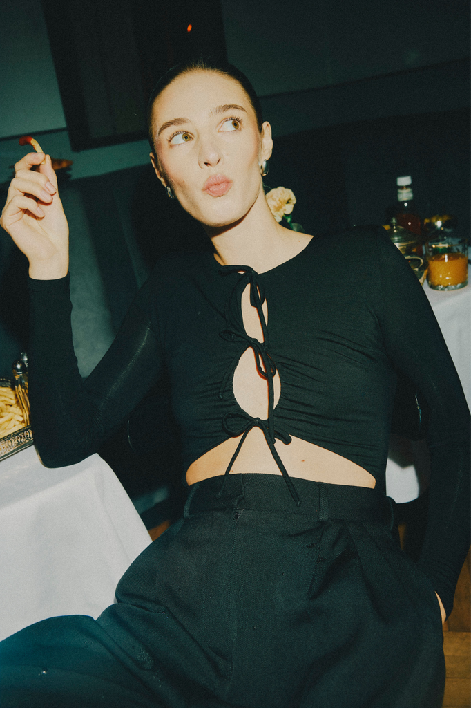 „Con te” oznacza po włosku „z tobą” i z tą właśnie myślą powstało to body. Wykonane z lyocellu, dzięki czemu dobrze przylega do ciała, jednocześnie pozwalając mu oddychać. Mocne, ale kobiece poduszki na ramionach, dodają wyrazistości. A co najlepsze, sznurki z przodu sprawiają, że body jest seksowne, ale pozostaje na swoim miejscu podczas kręcenia się po włoskich miastach podczas letnich nocy. To jest amore!