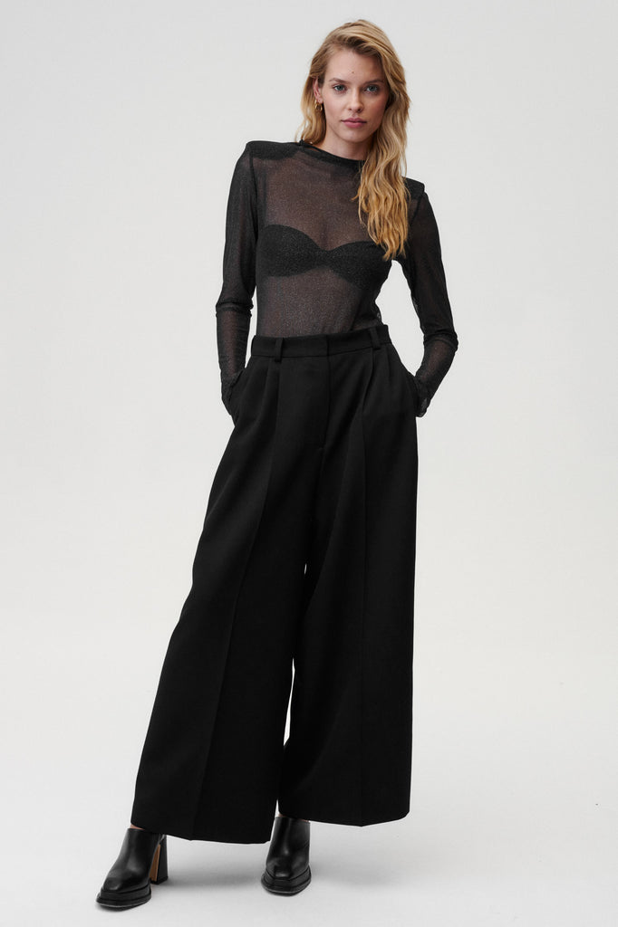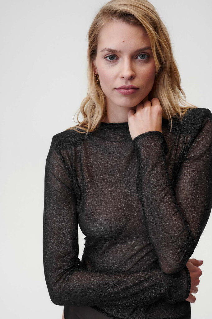 Body stworzone po to, by dodawać ci blasku. Wykonane z przezroczystej siateczki z połyskującymi drobinkami, jest jednocześnie zalotne i intrygujące. Idealne do noszenia na ulubioną bieliznę lub w połączeniu ze spodniami z wysokim stanem, aby uzyskać wyrazisty, elegancki look. Niezależnie od tego, czy wybierasz się na parkiet, czy na wieczorne wyjście z przyjaciółmi, to body sprawi, że poczujesz się wyjątkowo.