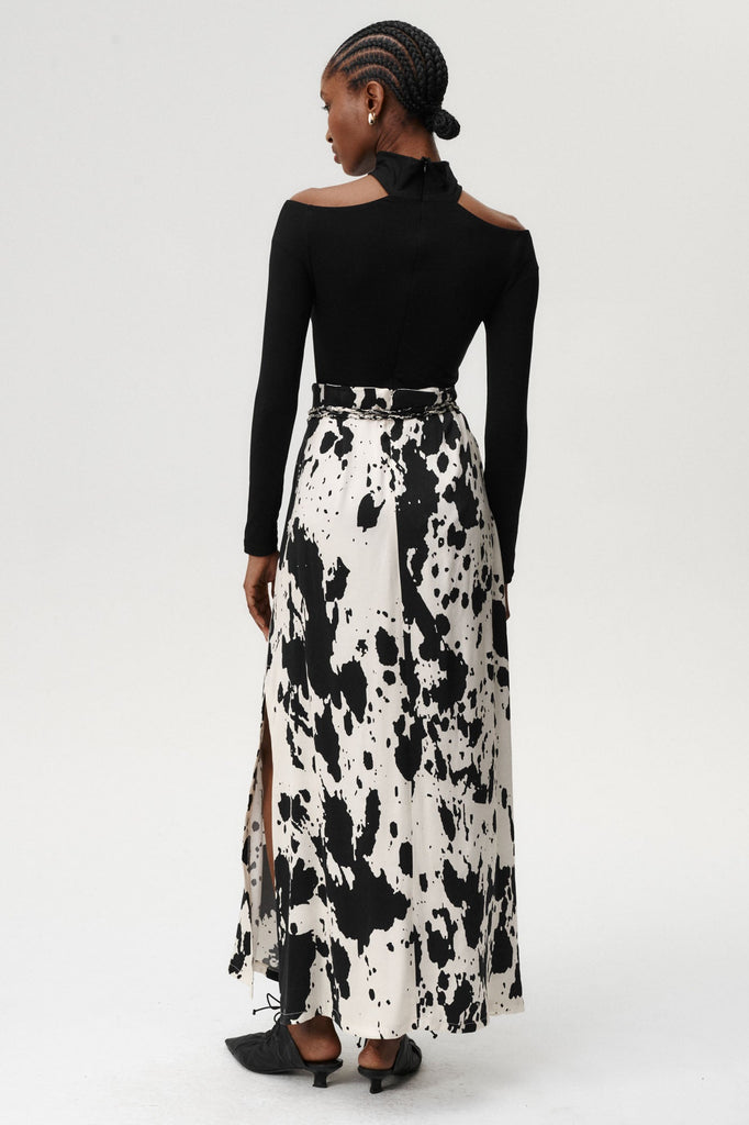 Odważna, a jednocześnie pełna elegancji – spódnica Reputation to wyrazisty element każdej garderoby. Jej wzór zapewni Ci pewność siebie, a zwiewna sylwetka i boczne rozcięcie nadają całości lekkości i dynamiki. Wykonana z lekkiej wiskozy, zapewnia zarówno komfort, jak I elegancki wygląd. Połącz ją z czarnym body lub dopasowanym topem.