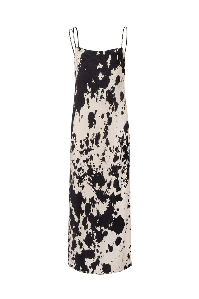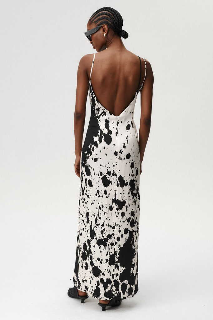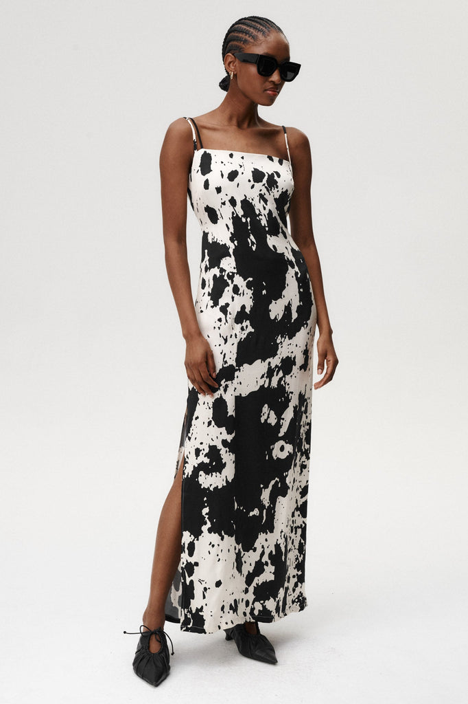 Elegancka, a przy tym magnetyzująco wyrazista — sukienka Mustang to maxi z nutą subtelnego dramatyzmu. Uszyta z miękkiego, lejącego cupro w czarno-biały, abstrakcyjny wzór, urzeka prostym dekoltem, cieniutkimi ramiączkami i odkrytymi plecami, które dodają jej zmysłowości. Rozcięcie do kolana nadaje sylwetce lekkości i nowoczesnego pazura. Wytworna, a zarazem odważna — to kreacja, która mówi więcej, niż się wydaje, nie potrzebując zbędnych słów.