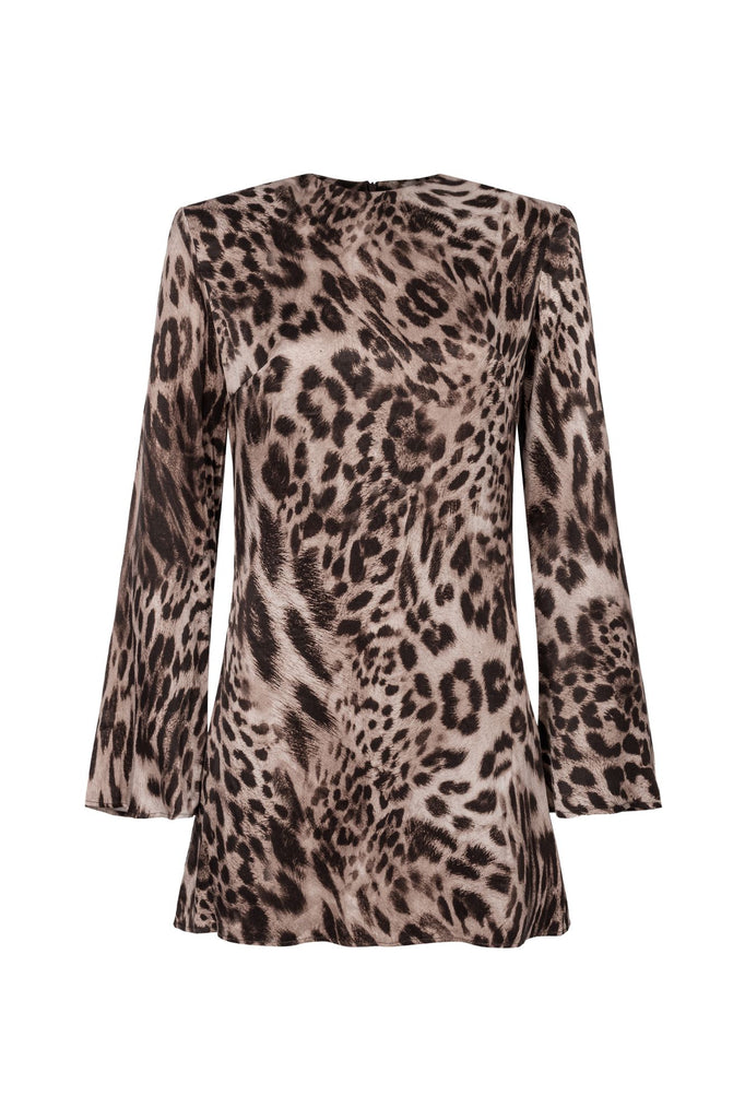 Nowe spojrzenie na nasz kultowy fason — Paloma Mini to ikoniczna sylwetka w zabawnym wydaniu z motywem lamparta. Uszyta z gładkiego, oddychającego cupro, zachwyca usztywnionymi ramionami, rozszerzanymi długimi rękawami i wyrazistą, ale harmonijną formą. Krótsza długość dodaje całości figlarności i luzu — idealna, gdy chcesz przyciągać spojrzenia bez wysiłku. Swobodna, pewna siebie i nieskończenie uniwersalna.